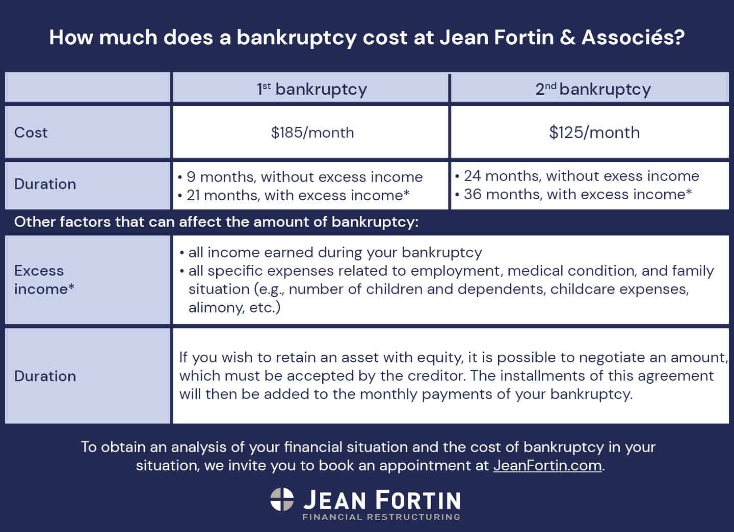Note that if the mandatory payments or the duration of your bankruptcy are not suitable for you, you have the option, during your bankruptcy, to extend the duration of your bankruptcy or to convert it into a consumer proposal. In the event of a proposal, the trustee would present an offer to your creditors, and if a majority approves, your proposal would replace the bankruptcy.